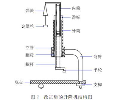 傳統(tǒng)約利彈簧秤的升降主尺刻在內(nèi)筒上,采用細(xì)繩連接滑輪驅(qū)動(dòng)內(nèi)筒及主尺上下移動(dòng)。但在實(shí)際測(cè)量過(guò)程中,這種結(jié)構(gòu)容易出現(xiàn)運(yùn)行不穩(wěn)定、易損壞等問(wèn)題,因此對(duì)該實(shí)驗(yàn)的探討和改進(jìn)一直以來(lái)備受廣大高校師生的關(guān)注。針對(duì)上述問(wèn)題,本文對(duì)傳統(tǒng)約利彈簧秤的傳動(dòng)結(jié)構(gòu)進(jìn)行改進(jìn),保留其測(cè)量終端不變,測(cè)量方法不變,保證改進(jìn)前后,儀器測(cè)量范圍一致。