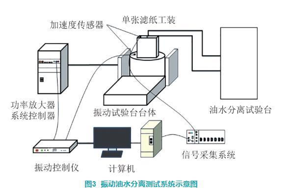 試驗(yàn)的主要設(shè)備有電振動試驗(yàn)臺、按照ISO 16332標(biāo)準(zhǔn)搭建的柴油–水分離試驗(yàn)臺、加速度傳感器及信號采集系統(tǒng)、電子天平、庫倫法微量水測定儀、界面張力儀、黏度計等。