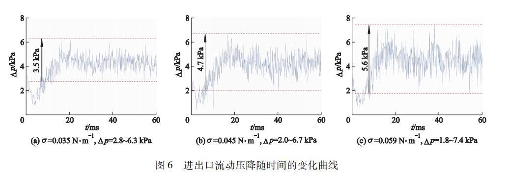 圖6進(jìn)出口流動壓降隨時(shí)間的變化曲線