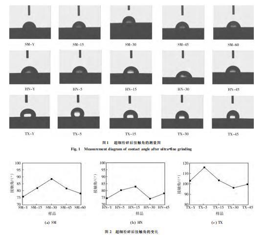 圖2超細(xì)粉碎后接觸角的變化(使用Delta-8表面張力儀測(cè)得)
