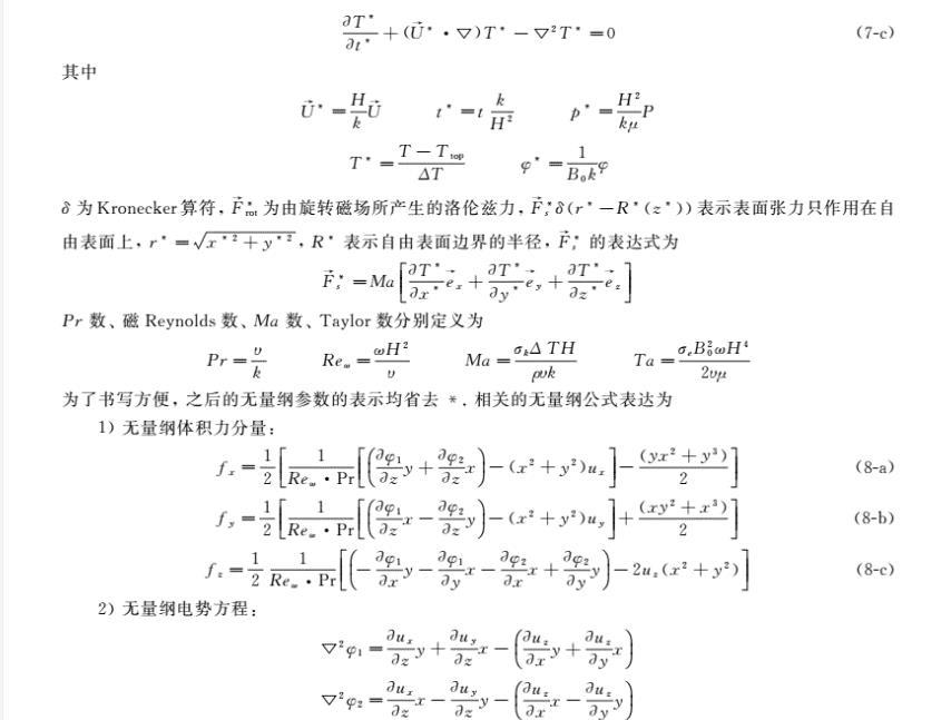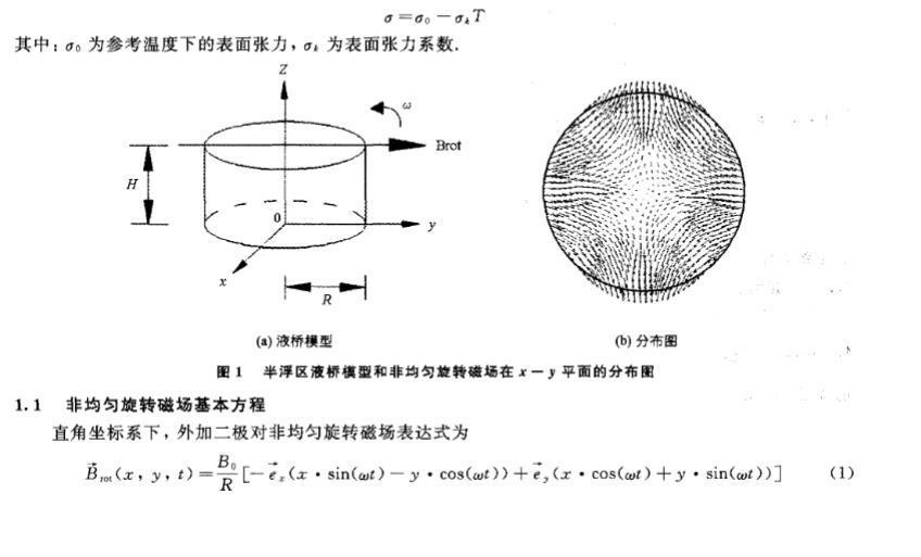基于浮區(qū)法晶體生長中非均勻旋轉(zhuǎn)磁場對流控制研究工作鮮有的現(xiàn)狀,為了進一步完善外加旋轉(zhuǎn)磁場對浮區(qū)熔體的對流控制的理論研究,筆者引用了有限長-α模型的思想,建立了三維磁流體動力學(xué)模型,研究了微重力下外加二極對非均勻旋轉(zhuǎn)磁場對浮區(qū)熔體表面張力對流的控制作用。