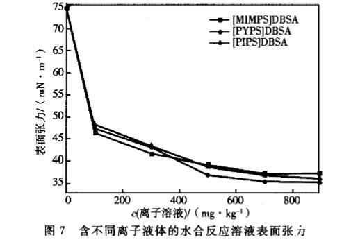 2.3 3種離子液體對降低水合物反應溶液表面張力的效果對比