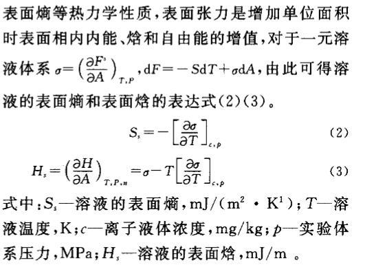 表1是不同濃度的離子液體表面熵S_i、表面焓H_r的值。