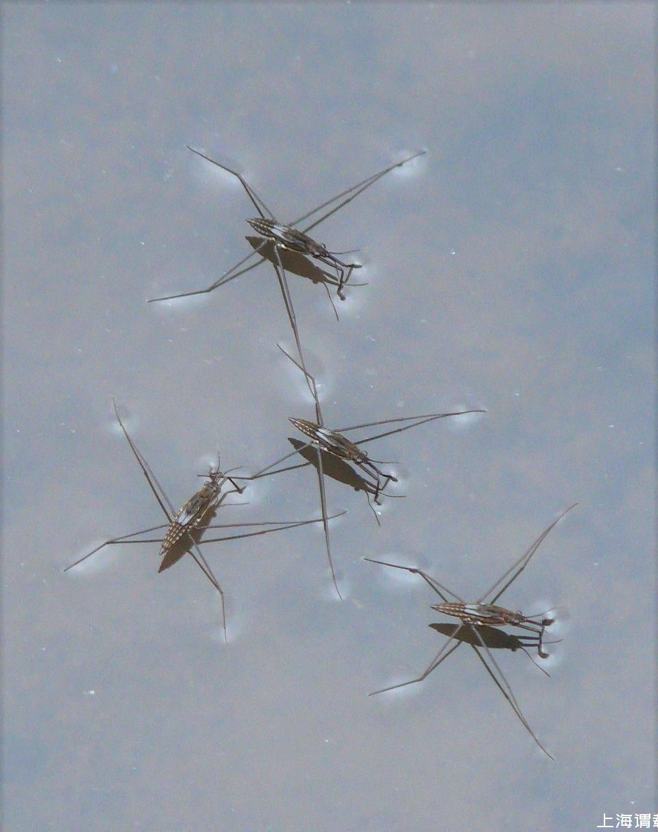 有一種叫水黽的昆蟲,它就依靠長(zhǎng)長(zhǎng)的腿在水面行走如飛。